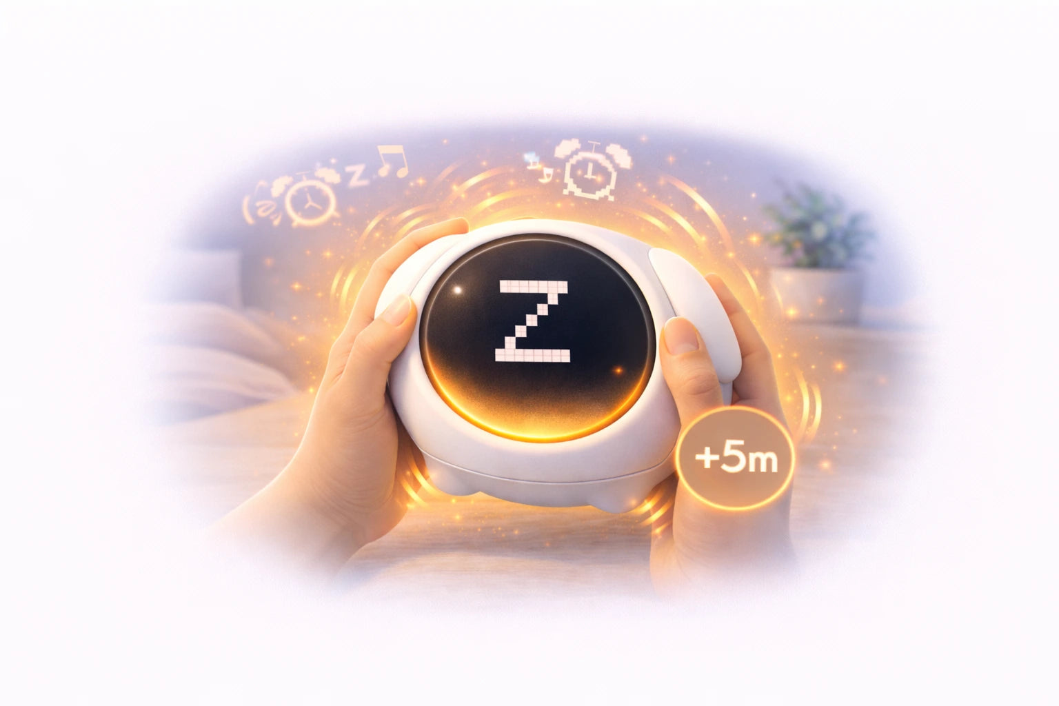 When the alarm is ringing, tap or gently shake Wakey to activate snooze and delay the alarm by 5 minutes.